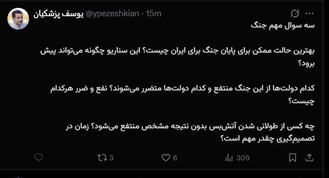 — یوسف پزشکیان (@ypezeshkian) April 26, 2026