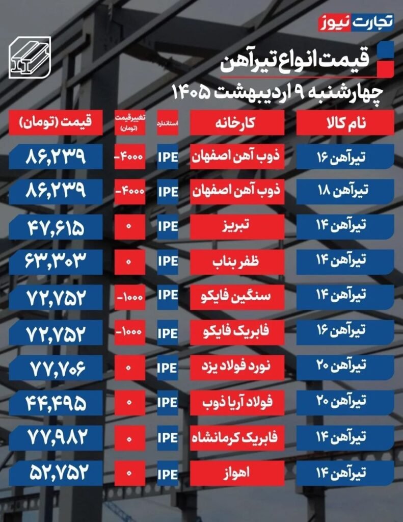 تیرآهن ۱۴ سنگین فایکو نیز با ۱۰۰۰ تومان کاهش ارزش با قیمت ۷۲ هزار و ۷۵۲ تومان در حال خرید و فروش است.