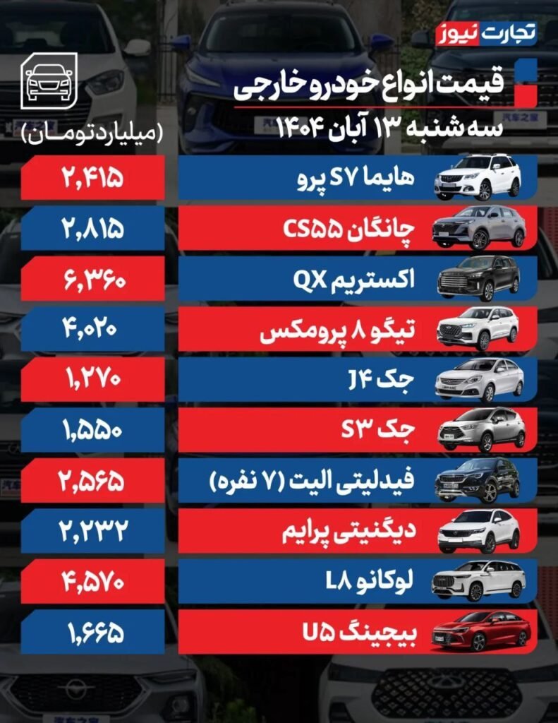 38 ممکن است به موارد زیر علاقهمند باشید آخرین قیمت پراید، پژو، سمند، کوییک، دنا و تارا سفره افطار برای یک خانواده چهار نفره چند هزار تومان آب میخورد؟ صادق: حدود ۷۰ هزار واحد مسکونی تحویل قطعی داده ایم که ۵۰ هزار واحد در یکسال اخیر بوده است قیمت جدید دلار، یورو و سایر ارزها | ۴ آذرماه ۱۴۰۴
