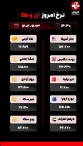 نرخ امروز ارز و طلا