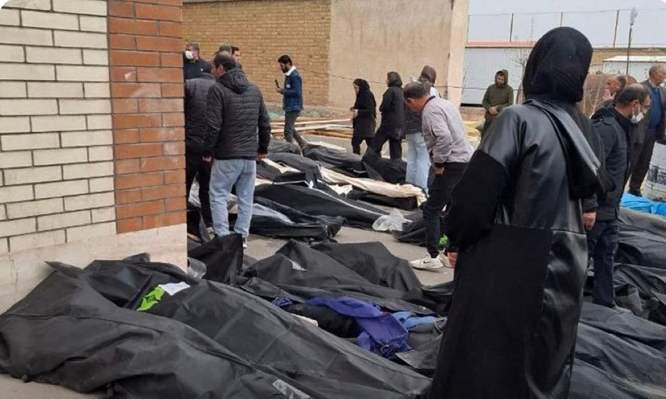 ویدیوهای تأییدشده از مرکز پزشکی قانونی کهریزک در تهران، که توسط گاردین بررسی شده، صحنههایی مشابه را نشان میدهد؛ از جمله آنچه به نظر میرسد صدها جسد است که بیرون از این مرکز قرار داده شده و خانوادههایی که در میان آنها به دنبال عزیزان خود میگردند.