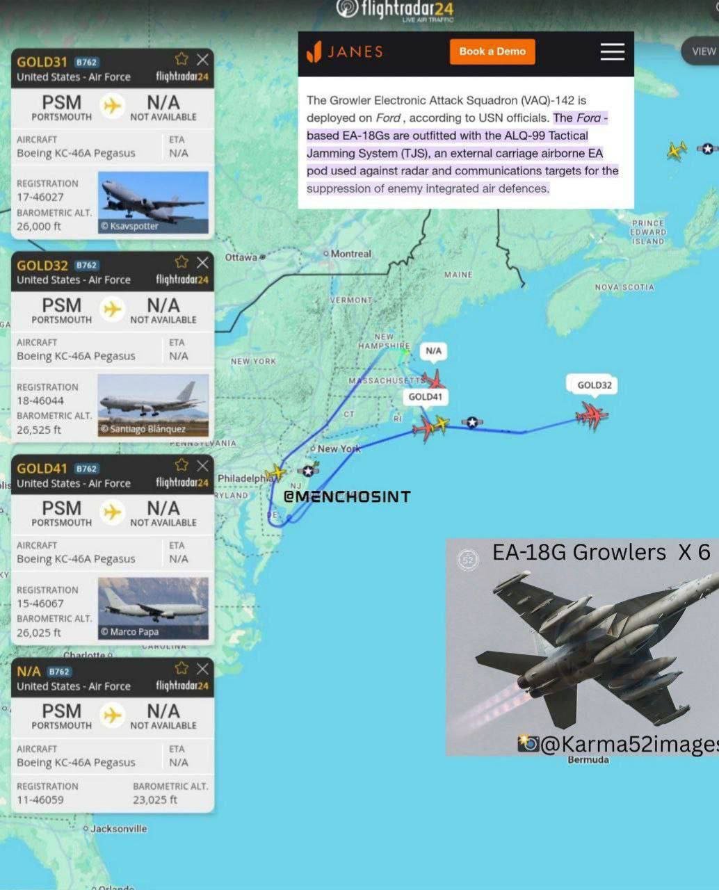 فروند هواپیمای جنگ الکترونیک ارتش آمریکا به سمت خاورمیانه در حال پروازند