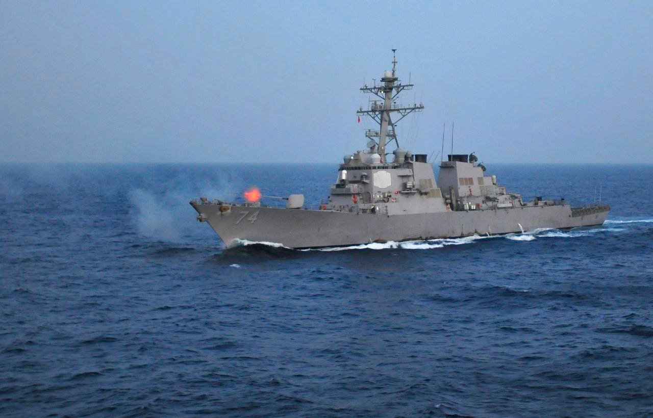 یک ناوشکن آمریکایی برای مهار اوضاع و تضمین عبور ایمن نفتکش آمریکایی مداخله کرد.