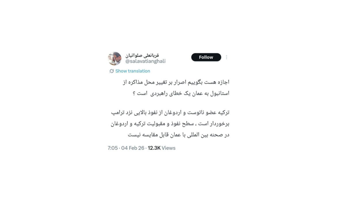 اجازه هست بگوییم اصرار بر تغییر محل مذاکره از استانبول به عمان یک خطای راهبردی است ؟