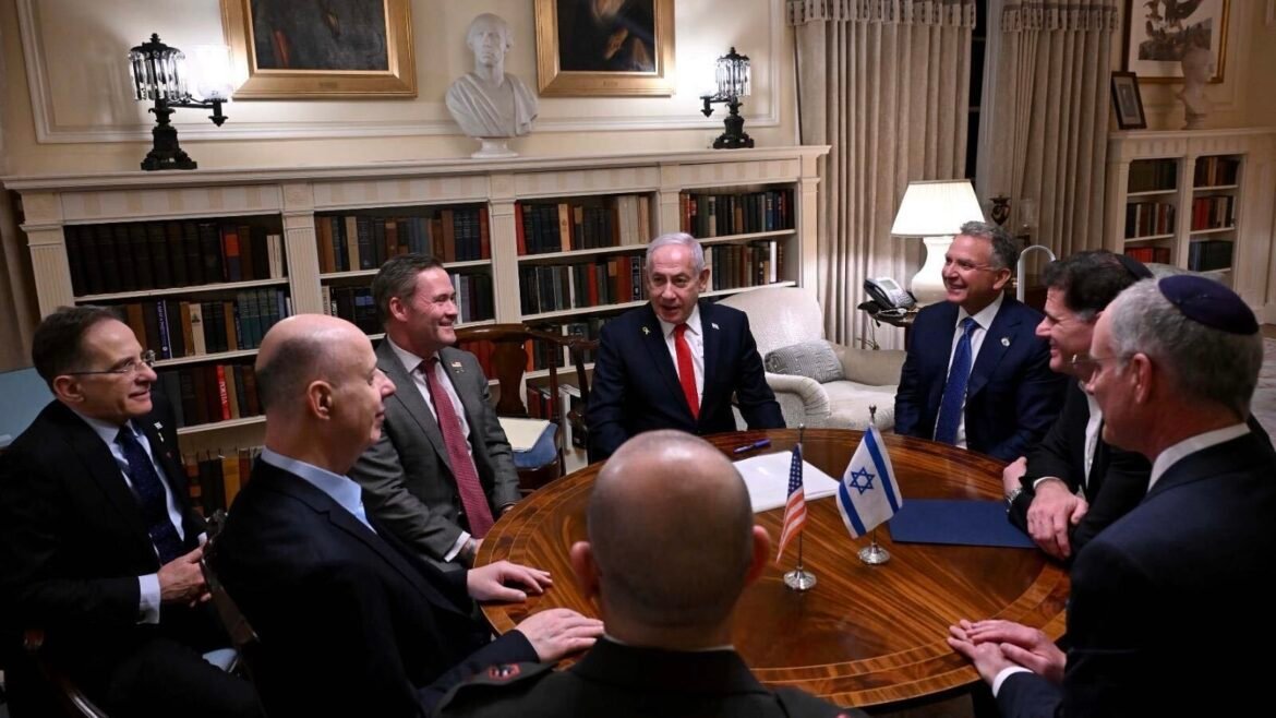 بنابر اعلام دفتر نخستوزیری اسرائیل، بنیامین، نخستوزیر اسرائیل شامگاه سهشنبه پس از ورود به واشنگتن با استیو ویتکاف، فرستاده ویژه کاخ سفید و جرد کوشنر، داماد و مشاور دونالد ترامپ رئیسجمهوری آمریکا در «خانه بلر»، اقامتگاه مهمانان رئيسجمهوری آمریکا دیدار کرد.
