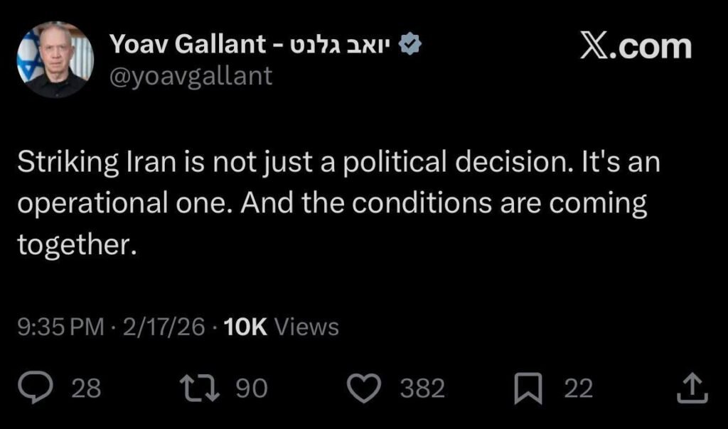 — יואב גלנט – Yoav Gallant (@yoavgallant) February 17, 2026