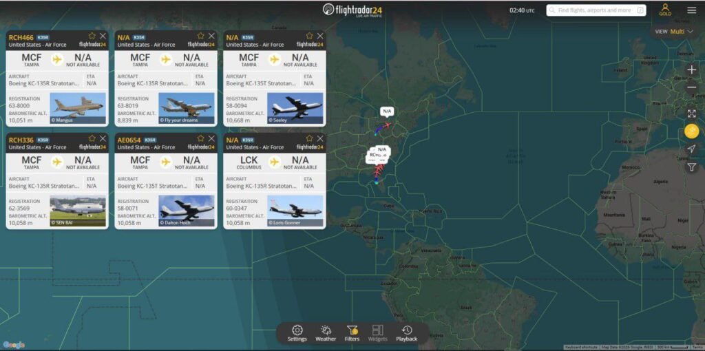 هم‌زمان، ۹ فروند هواپیمای سوخت‌رسان دیگر به همراه دو فروند سوخت‌رسان پیشرفته‌تر نیز شب گذشته در حال عبور از اقیانوس اطلس بودند.