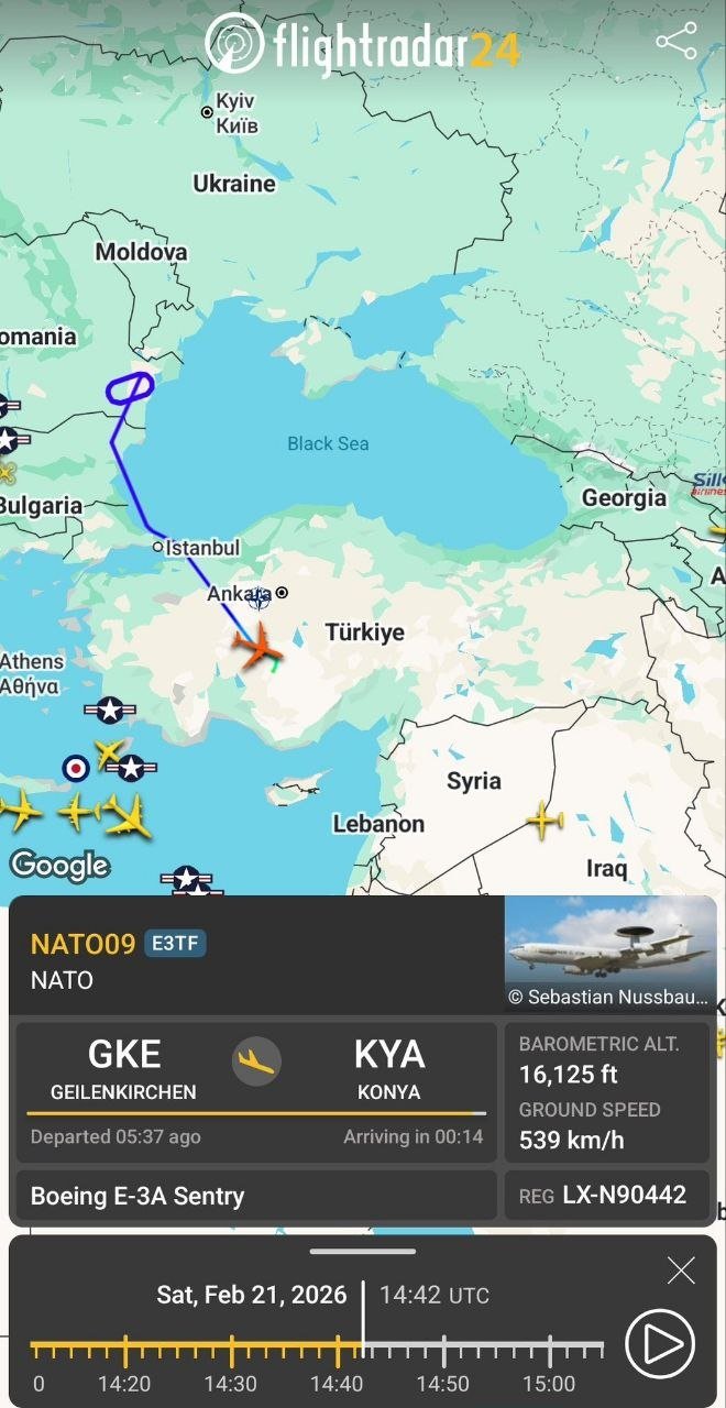 خانه بین الملل ناتو بار دیگر هواپیمای هشدار زودهنگام و کنترل هوایی (آواکس) مدل E-3A سنتری با شماره LX-90442 را به پایگاه هوایی قونیه در ترکیه اعزام کرده است
