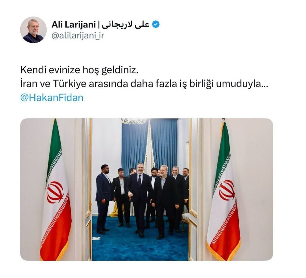 37وزیر امور خارجه ترکیه، امروز ۹ آذر ۱۴۰۴ در محل دبیرخانه شورای عالی امنیت ملی ایران با علی لاریجانی دیدار و گفتوگو کرد. در این دیدار، ۲ طرف درباره مجموعهای از مسائل مهم امنیتی منطقه تبادل نظر کردند.Kendi evinize hoş geldiniz.İran ve Türkiye arasında daha fazla iş birliği umuduyla…@HakanFidan pic.twitter.com/JZ9AWGOQBa— Ali Larijani | علی لاریجانی (@alilarijani_ir) November 30, 2025 ممکن است به موارد زیر علاقهمند باشید نماینده دموکرات کالیفرنیا در کنگره: ما قطعنامه اختیارات جنگی را برای بحث و رأی گیری در کنگره ارائه خواهیم کرد گروسی: آژانس هنوز از تاسیسات آسیبدیده ایران بازدید نکرده است نماینده مجلس شورای اسلامی خبرداد : ایجاد شهرکهای صنعتی در مرزهای ایران و پاکستان اعتراض ایران به هلند برای قاچاق اقلام ممنوعه توسط دیپلمات هلندی