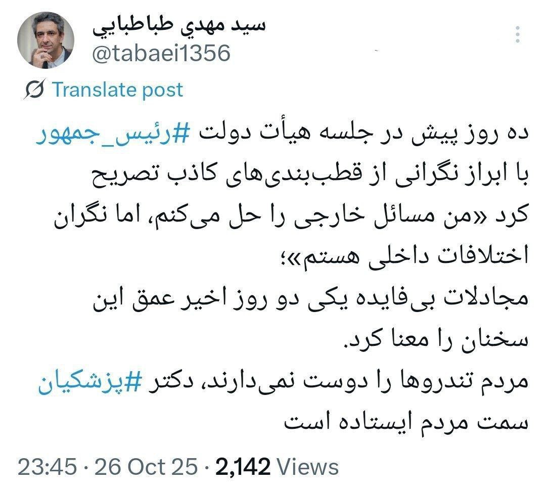 طباطبایی: مجادلات روزهای اخیر بی‌فایدهاست