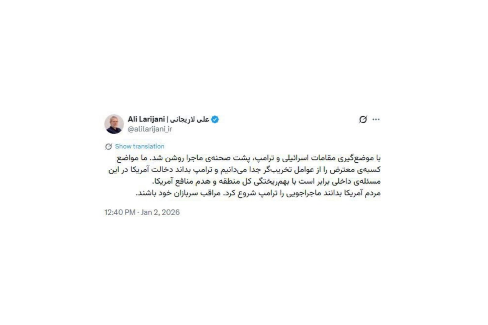 — Ali Larijani | علی لاریجانی (@alilarijani_ir) January 2, 2026