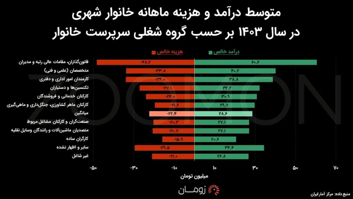 گروه شغلی «قانونگذاران، مقامات عالی رتبه و مدیران» از متخصصان علمی و فنی نیز ۵۰ درصد درآمد بیشتری در سال گذشته داشتهاند./زومان
