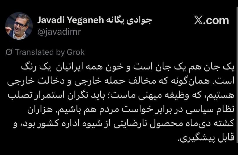 — Javadi Yeganeh جوادی یگانه (@javadimr) February 26, 2026