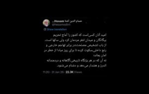 توئیت معنادار حسامالدین آشنا