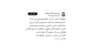بین ۲۵ تا ۲۸ درصد بازداشت شدگان در حوادث اخیر زیر ۲۰ سال بودهاند