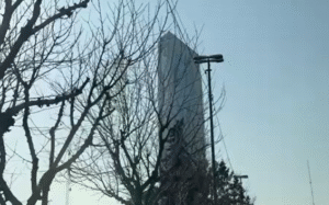 برج متعلق به بابک زنجانی که در جنگ ۱۲ روزه مورد حمله واقع شده بود و او از عدم مجوز واردات شیشه های آن برای بازسازی گلایه داشت؛ درحال بازسازی است