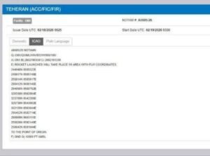 ایران با صدور نوتام A0605/26 اعلام کرد که در تاریخ 19 فوریه (۳۰ بهمن)، در بازه ۰۳:۳۰ تا ۱۳:۳۰ به وقت جهانی (۰۷:۰۰ تا ۱۷:۰۰ به وقت ایران) پرتابهای موشکی انجام خواهد شد