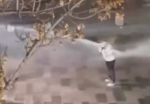 ایستادگی مردم معترض مقابل ماشین آبپاش در همدان