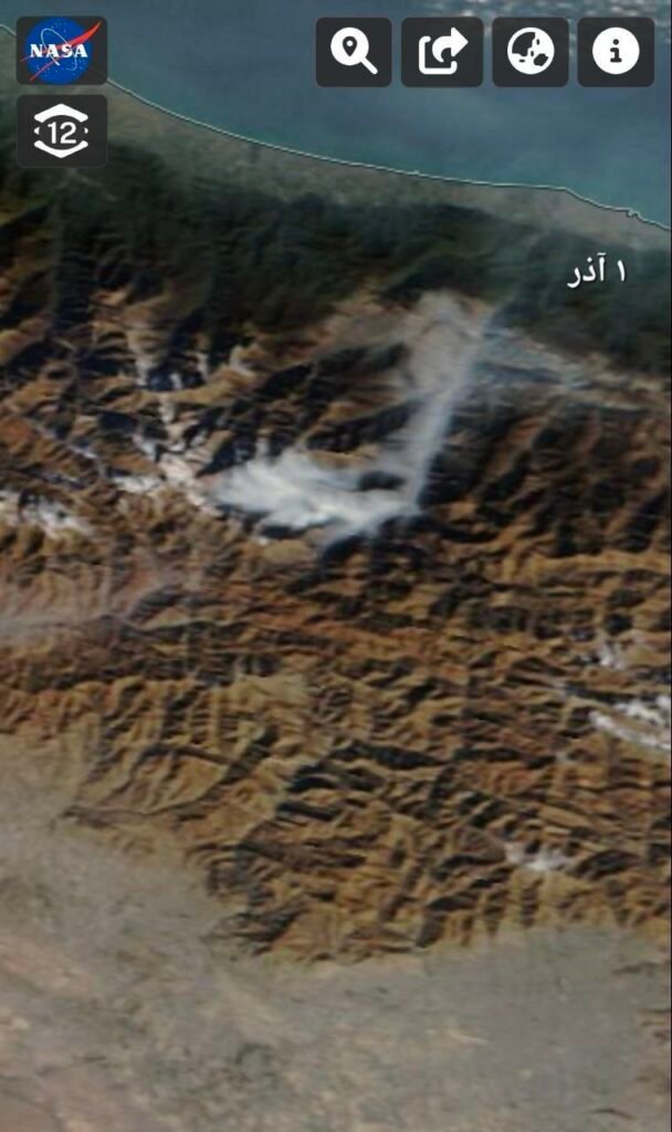 تصاویر لحظاتی پیش ناسا از محل آتش سوزی جنگل الیت نشان میدهد که آتش سوزی تقریباً مهار شده ولی حجم دود در منطقه به نسبت دیروز خیلی بیشتر شده است