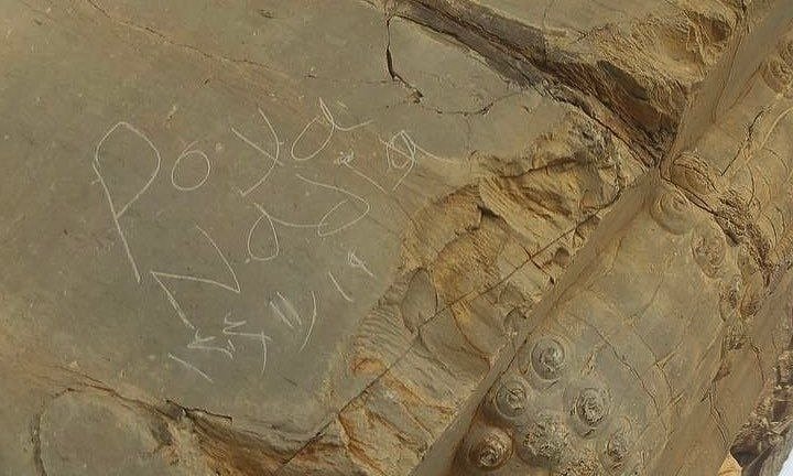 چند روز قبل دو بازدید کننده نام خودشان را روی دیواره دروازه ملل تخت جمشید برای یادگاری حک کردند!