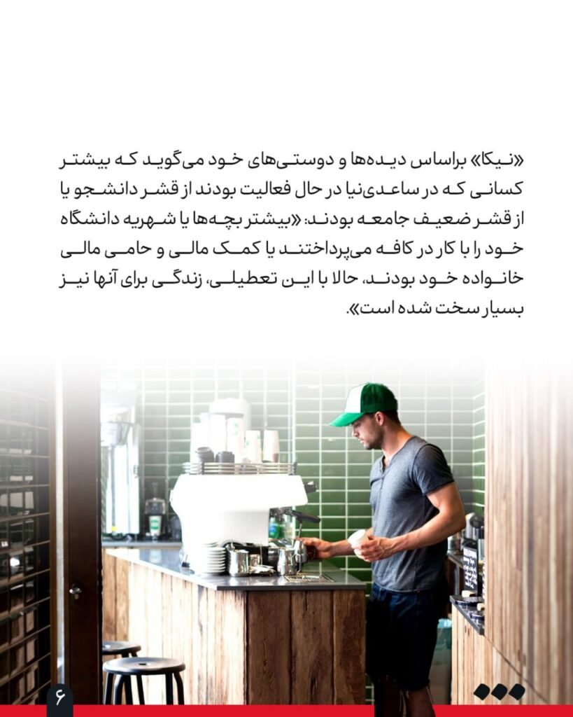 بیشتر افرادی که در این کافهها مشغول به کار بودند، دانشجو یا از قشر کمبرخوردار بودند که با حقوقشان خرج زندگی و دانشگاه را میدادند