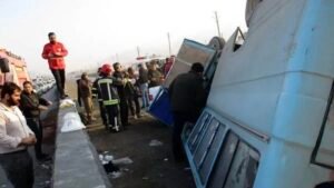 انحراف مینیبوس در بزرگراه آیتالله سعیدی/ ۱۰ نفر مصدوم شدند