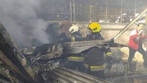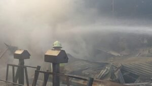 آتشسوزی گسترده یک گاراژ چوببری در بزرگراه آزادگان تهران