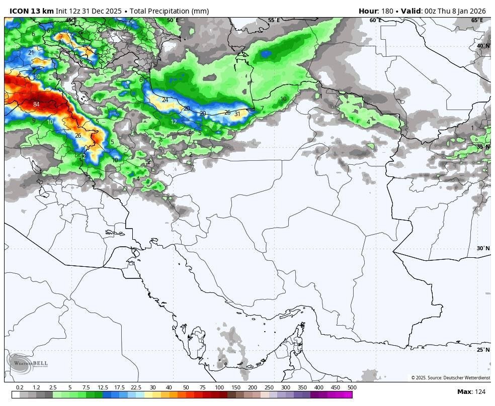 با ورود این موج بارشی شاهد بارش های ضعیفی در استان های شمال غربی، غربی و دامنههای البرز خواهیم بود.