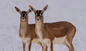 تصویری دیدنی از آهو گواتردار و برهاش در پارک ملی گلستان