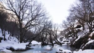 نمای برفی رودخانه پایین قلعه کنگلو سوادکوه