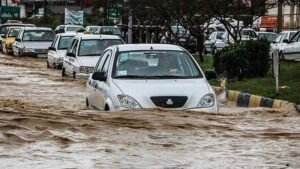 سرازیرشدن سیلاب از تپههای شمالی بندرعباس