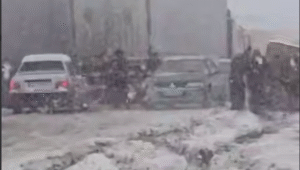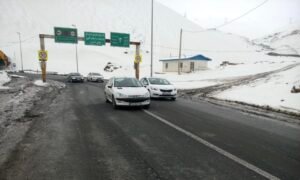 گرفتار شدن دهها خودرو درپی بارش برف مرز تمرچین