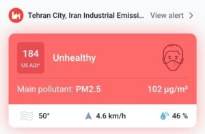 نفوذ آلودگی به کوههای شمال تهران و در بر گرفتنِ روستای امامه با فاصلهی ۵۰ کیلومتر از شهر