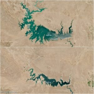 تصویر بالا سد کرخه بزرگترین سد ایران در وضعیت نرمال و پرآب، پایین سد کرخه الان