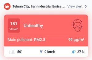 تهران با شاخص ۱۹۶ سومین شهر آلوده جهان