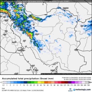 پیش بینی بارش برف تا ۲۳ آذر ماه