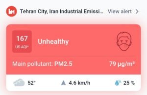 هوای تهران همچنان برای تمام گروهای سنی ناسالم است/ شاخص هوا اکنون ۱۶۷