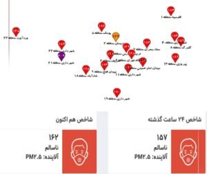شاخص کیفیت هوا در شهرهای بزرگ تا ساعت ۶
