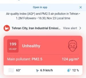 شاخص آلودگی شهر تهران از۲۰۰ عبور کرد!