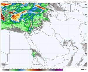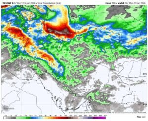 مجموع بارش احتمالی باران و برف در دو هفته آینده