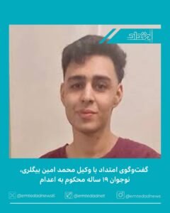 قاضی صلواتی، محمد امین بیگلری، نوجوان ۱۹ ساله را بدون دفاع وکیل و مطالعه پرونده به اعدام محکوم کرده است