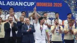 احمد عباسی بازیکن تیم ملی فوتسال بعد از سوپرگل قشنگ با حرکتی غم خود را از کشته شدن معترضان در خیابان نشان داد