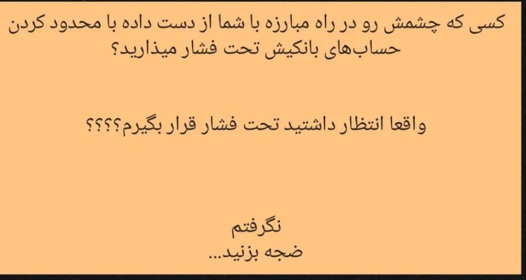 مهبانو خشنودی از آسیب دیدگان چشمی اعتراضات سال ۱۴۰۱ از ایجاد محدودیت برای حساب های بانکی شخصی اش خبر داد